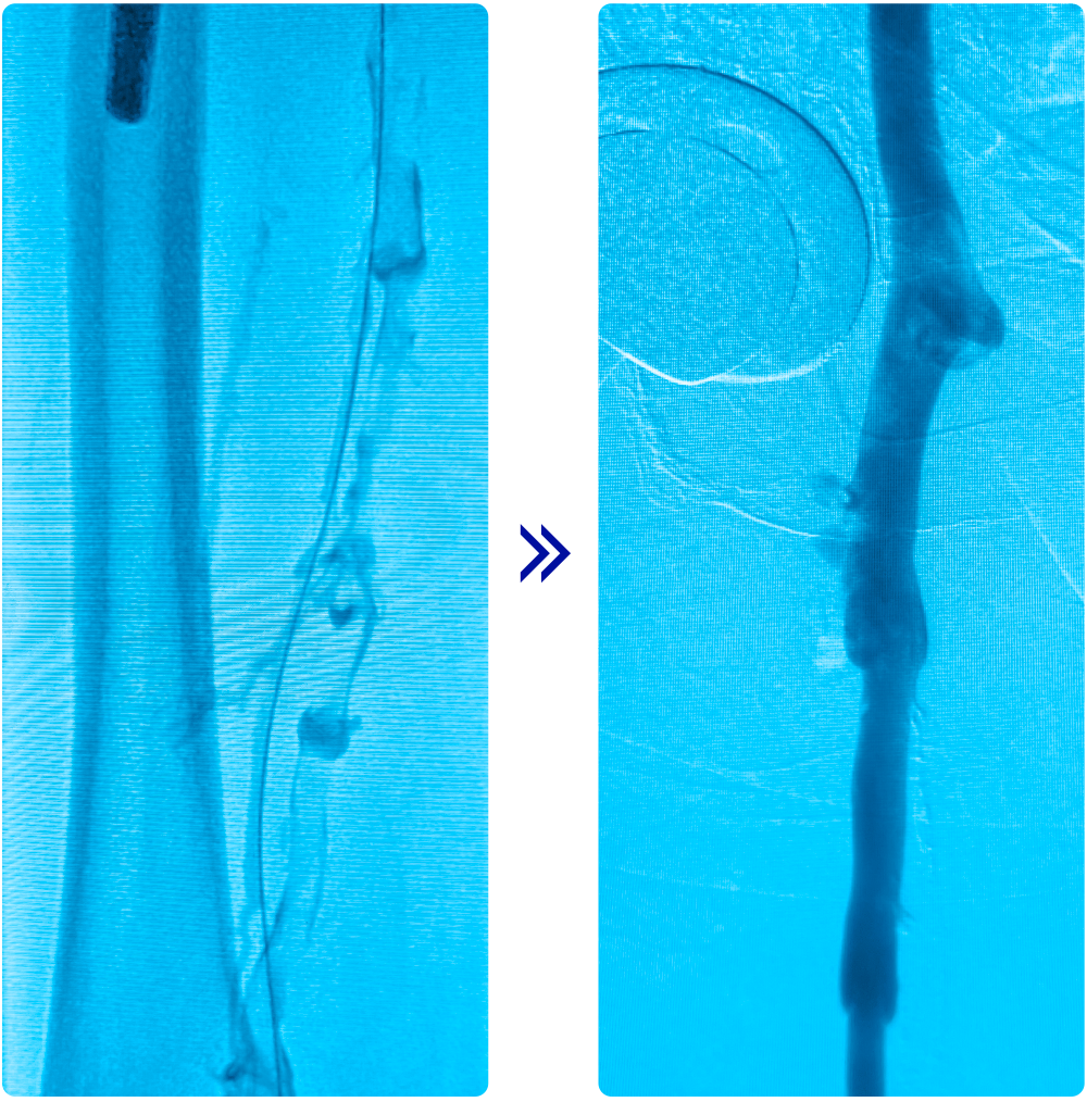 Fem-pop venous thrombus before (left) and after (right) treatment with the Pounce™ Venous Thrombectomy System